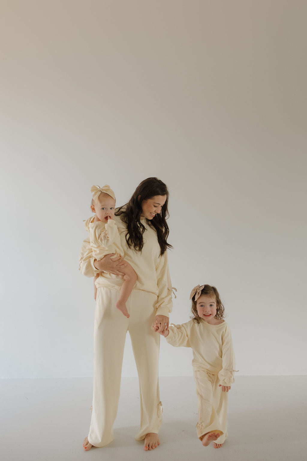 Made for play, school, and everything in between, this children’s sweat set is as comfortable as it is versatile. Finished with sweet bow details, it’s easy to wear and perfect for everyday adventures—a must-have in any little one’s wardrobe. Match it with the women’s sweat set and coordinating baby rompers for the complete family look.